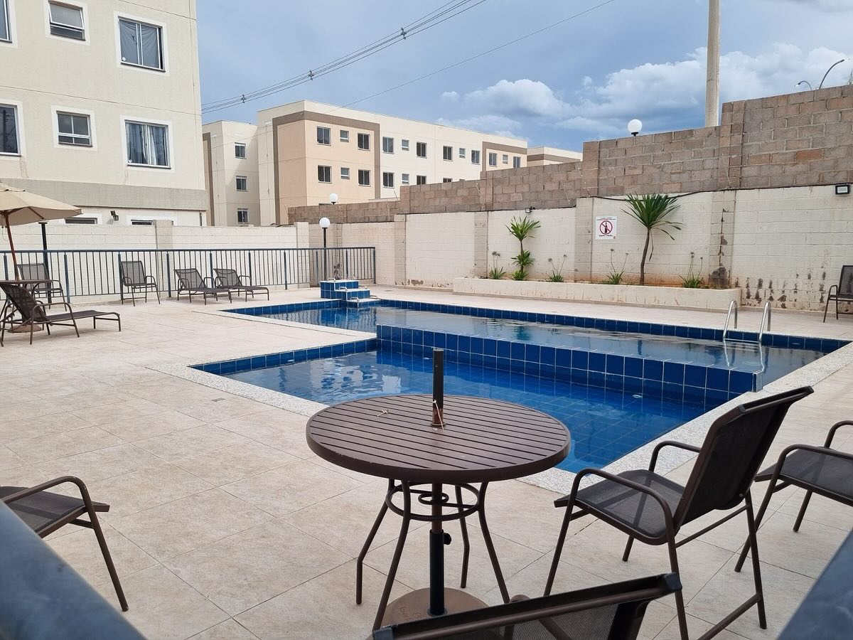 Área de Lazer com salão de festa, piscina, área gourmet e playground.